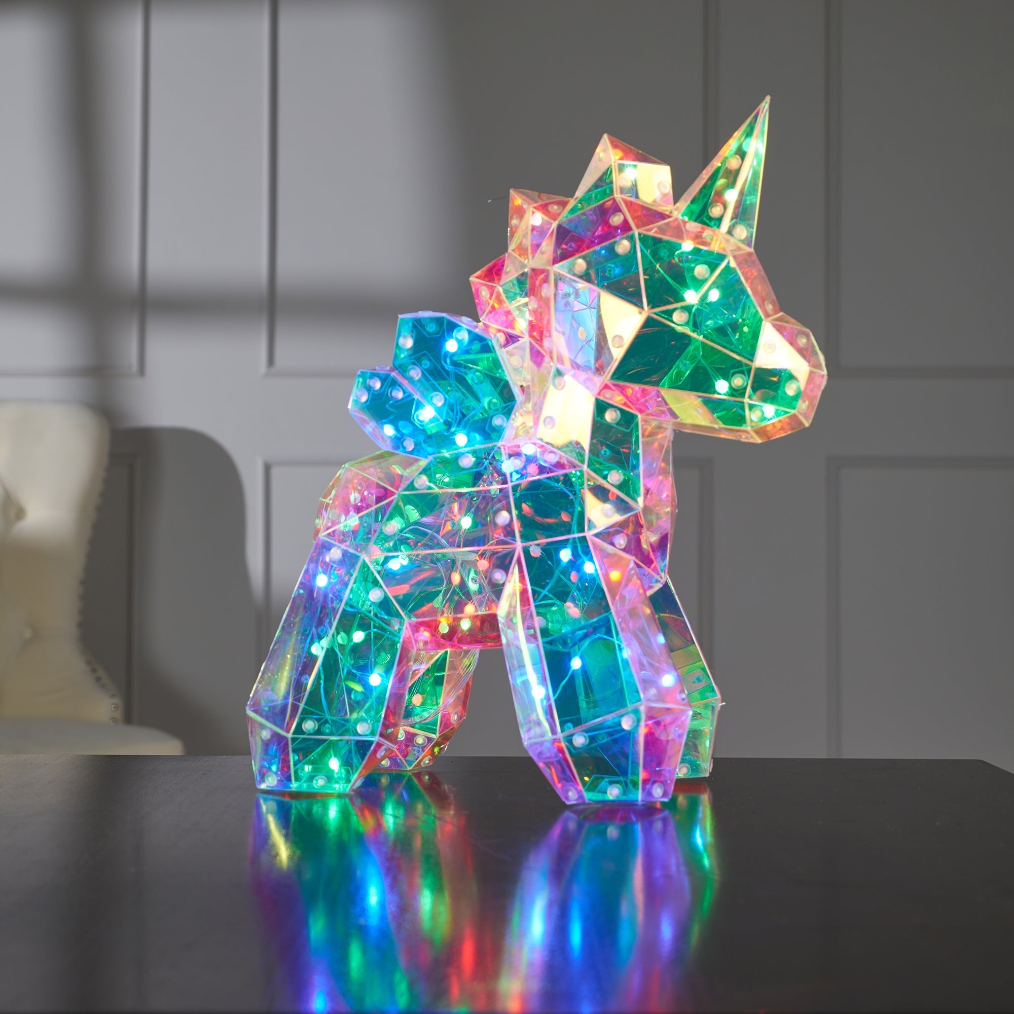 Experience the Enchanting Unicorn Brilliance with this 30CM high PET Unicorn adorned with 55 captivating RGB LED lights. Revel in the Vibrant RGB Glow as these 55 LEDs create a dynamic display, infusing your space with a burst of captivating colors. With USB-Powered Convenience, setup is effortless – simply connect to a USB port. The 90CM clear leadwire allows Flexible Positioning, enabling you to optimize your indoor atmosphere. Crafted for indoor magic, these PET Unicorn LED lights bring both warmth and fascination, transforming your surroundings into a realm of wonder. Illuminate your space with this whimsical and mesmerizing addition.