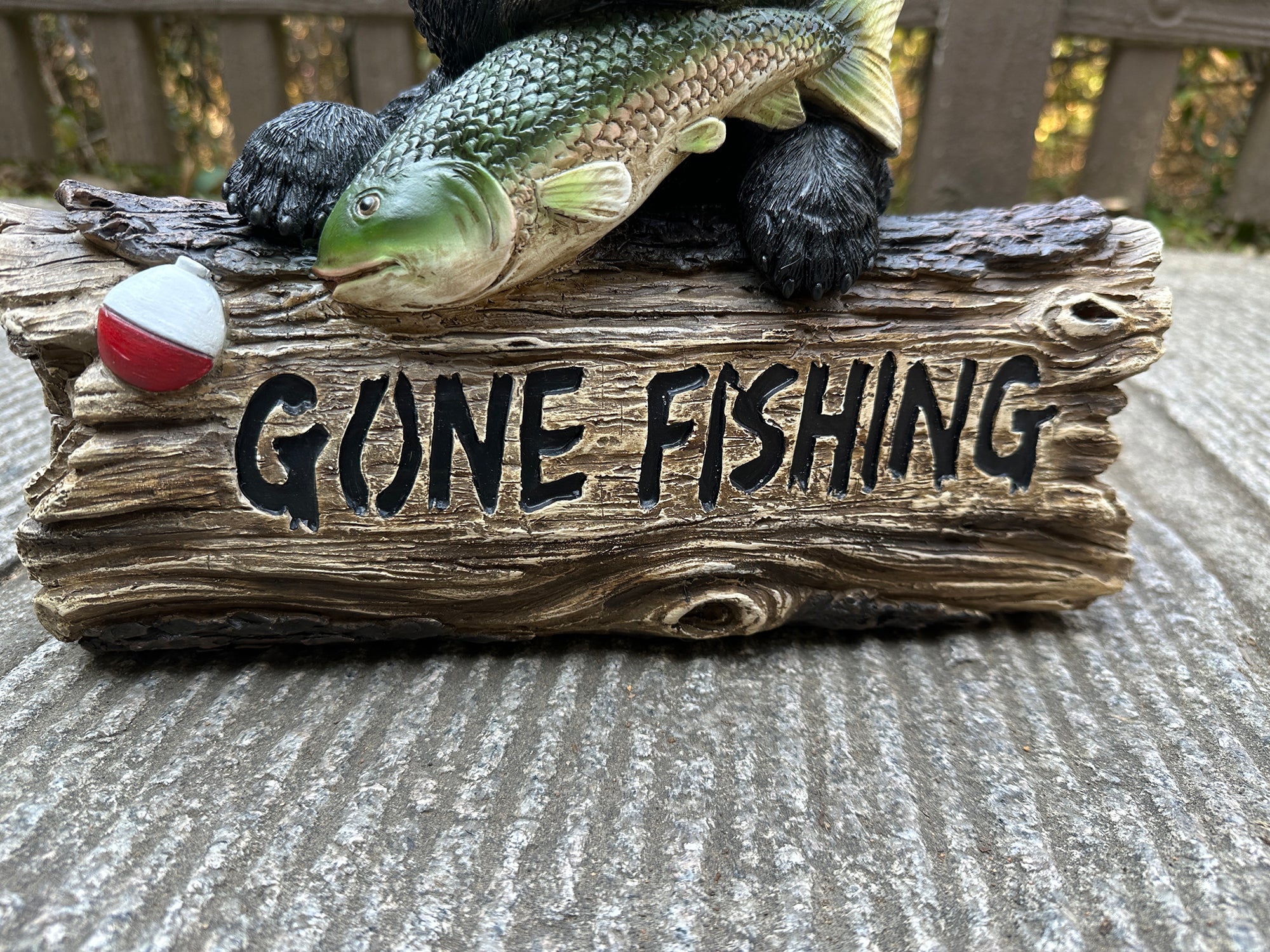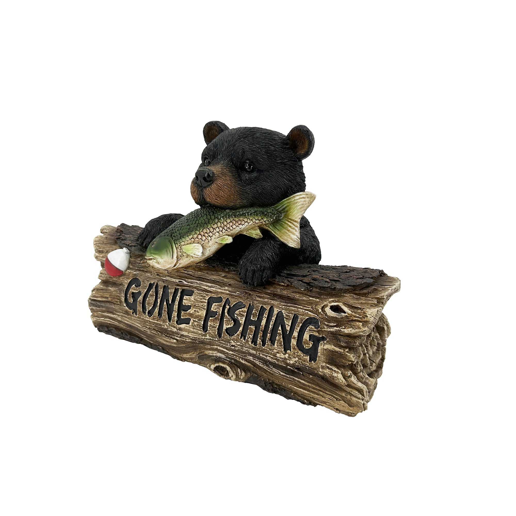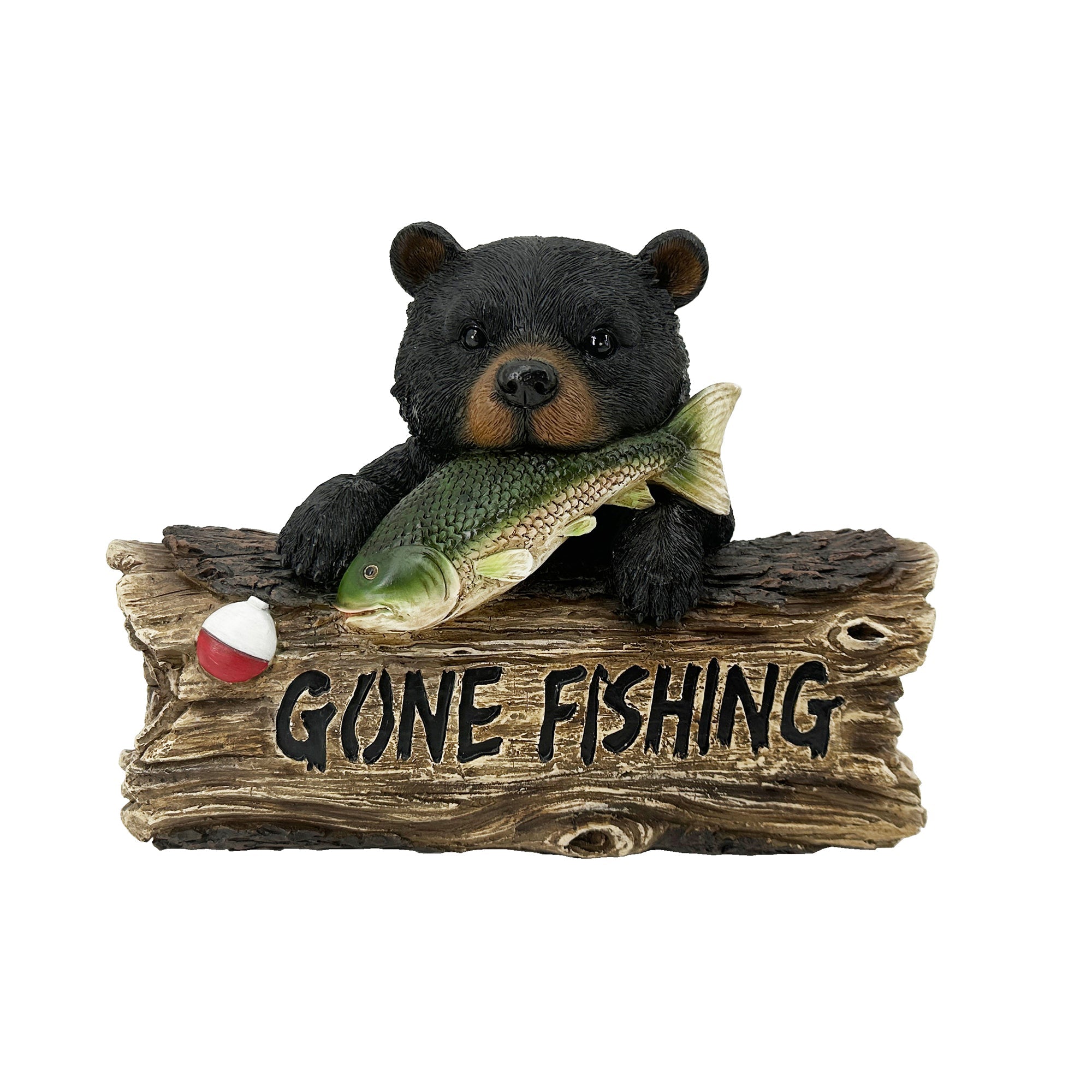 Add a rustic, outdoorsy charm to your home or garden with this adorable Black Bear with "Gone Fishing" Sign Statue. Made from high-quality, weather-resistant polyresin, this friendly bear figure is perfect for welcoming guests to your space with a playful nod to nature. Whether placed by your front door, in a flower bed, or on a shelf inside, it's easy to clean and makes a great gift for fishing enthusiasts or wildlife lovers.