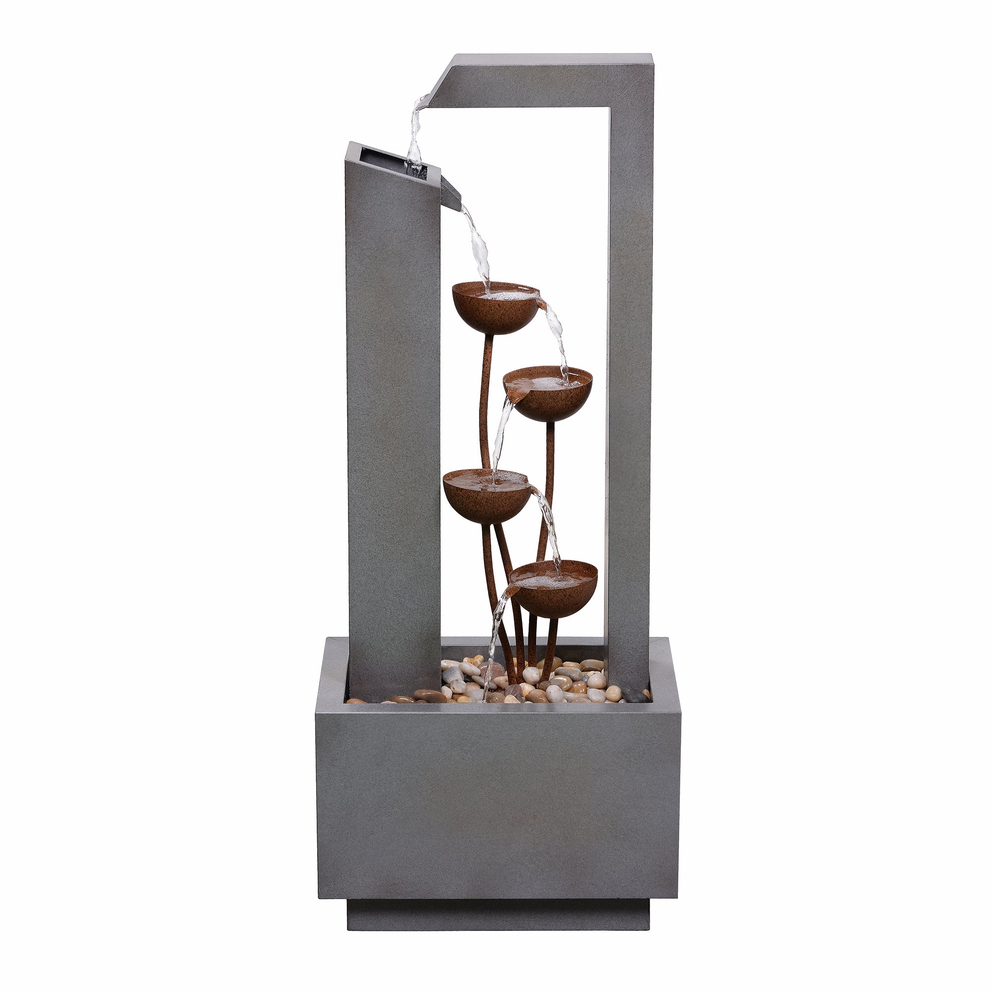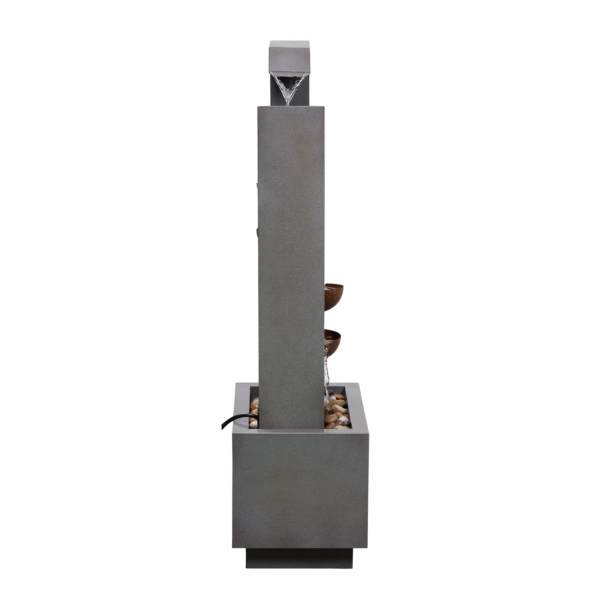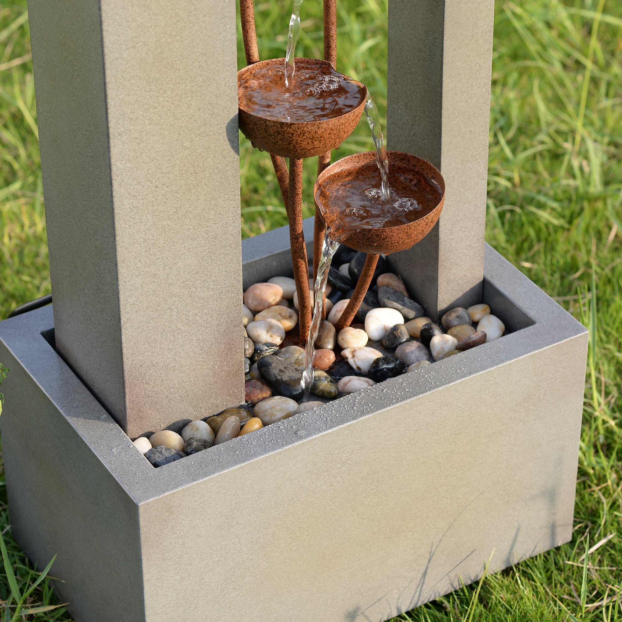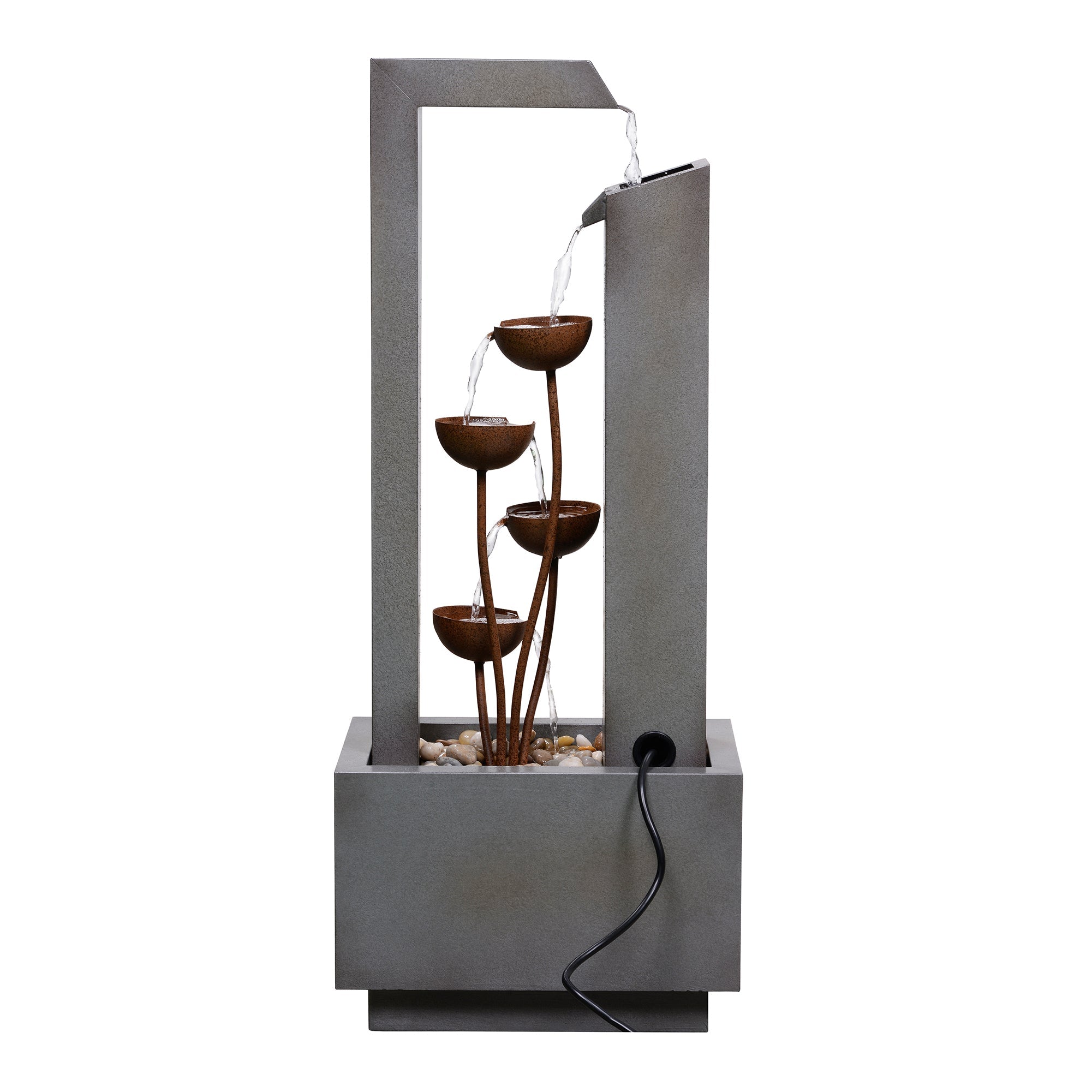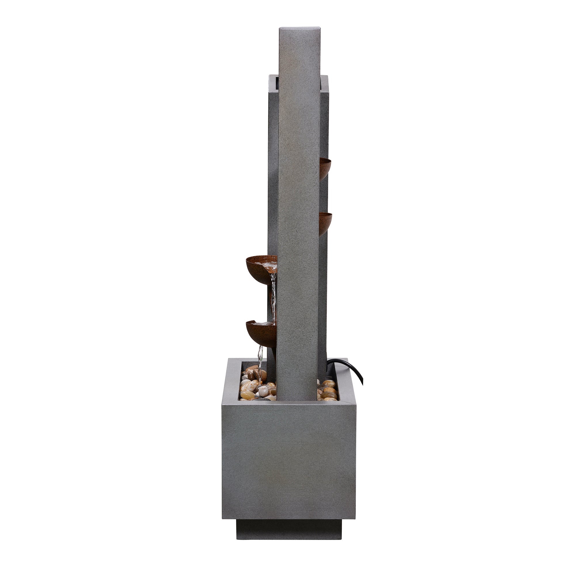 This elegant three-tiered fountain adds a touch of sophistication to any outdoor space. Constructed from durable galvanized sheet metal and featuring a sleek grey finish, it includes a built-in planter for added versatility. Powered by AC and designed for easy setup, this fountain offers both decorative and functional value for your garden or patio.