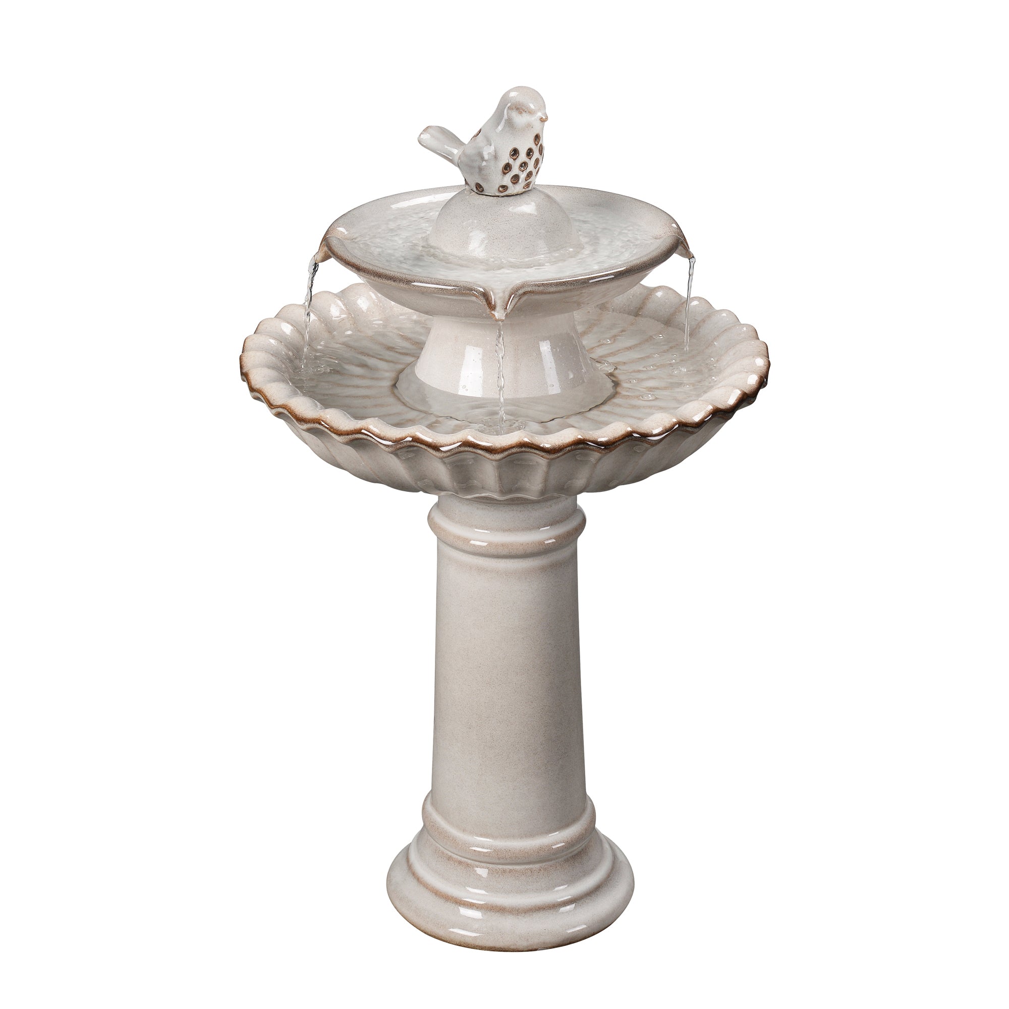 Introducing our Ceramic Fountain in classic ivory, exuding timeless elegance without the distraction of lights. Crafted with precision from high-quality ceramic, this fountain features a submersible pump (Model # MZ20250DA) for a gentle water flow, creating a serene atmosphere in your outdoor space. Enjoy the calming effects of flowing water without the added visual stimulation, making it a perfect addition to gardens, patios, or any outdoor setting.