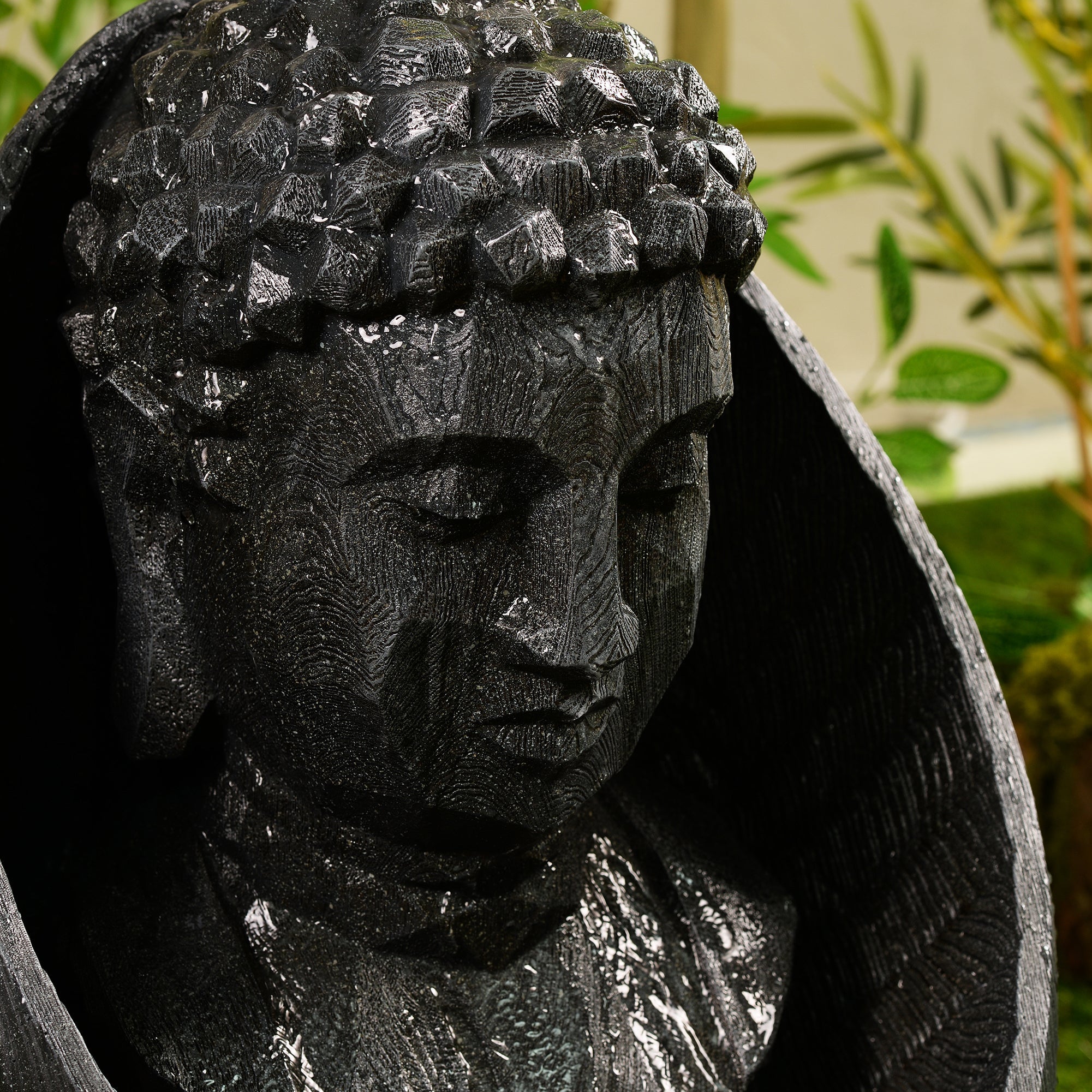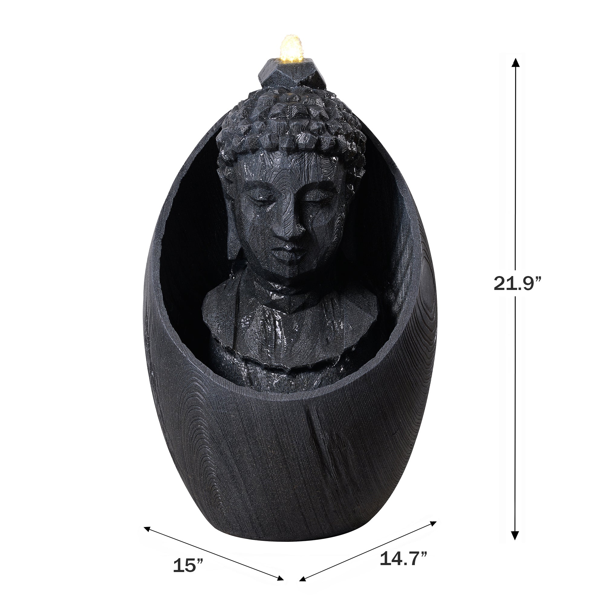 Add a serene and calming presence to your home or garden with the 22" H Buddha Head Water Fountain with LEDs. This beautifully crafted fountain features a lifelike Buddha head with flowing water, creating a peaceful ambiance that promotes relaxation and mindfulness. The integrated LED lights illuminate the water, casting a gentle glow that enhances the tranquil atmosphere both day and night. Made from durable, weather-resistant materials, this fountain is perfect for both indoor and outdoor spaces, bringing a touch of serenity to any setting.