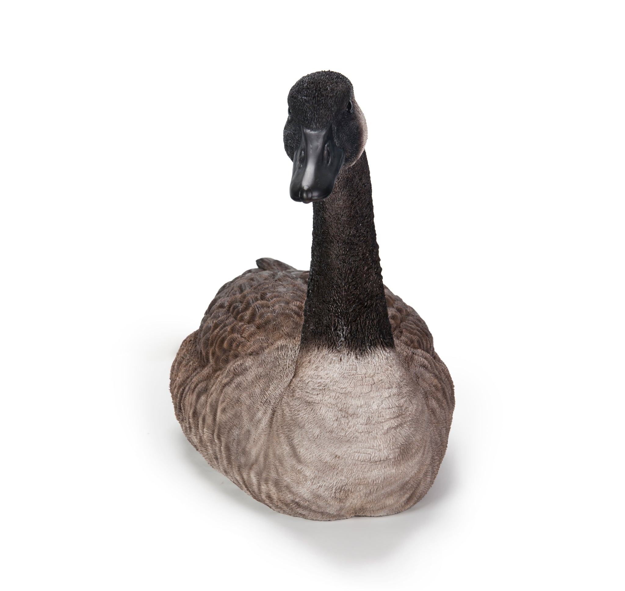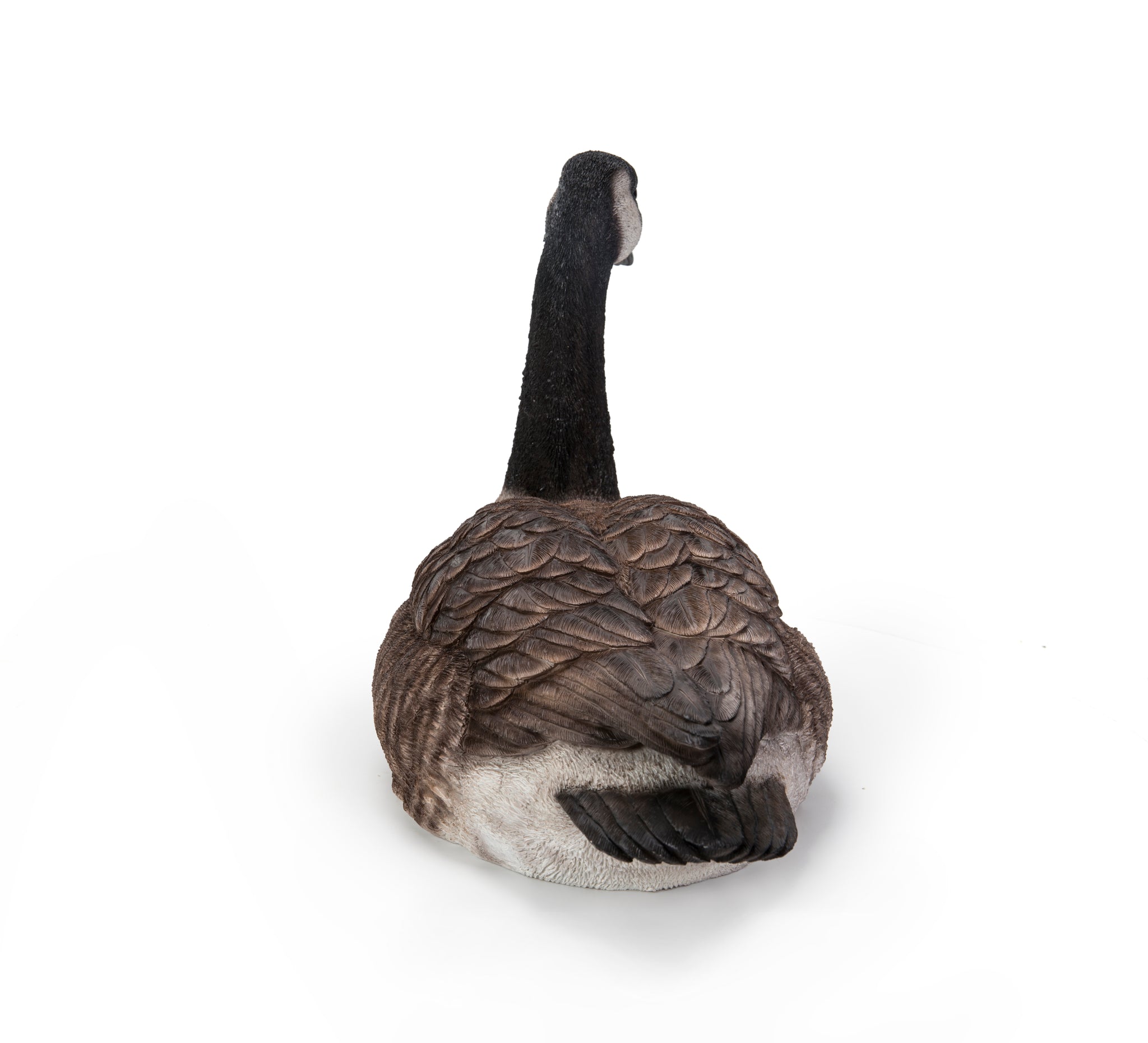 This sitting Canadian Goose Statue is carefully carved and hand-painted with vibrant colors that attempt to match nature's beauty. The little eyes are also carefully made of glass.