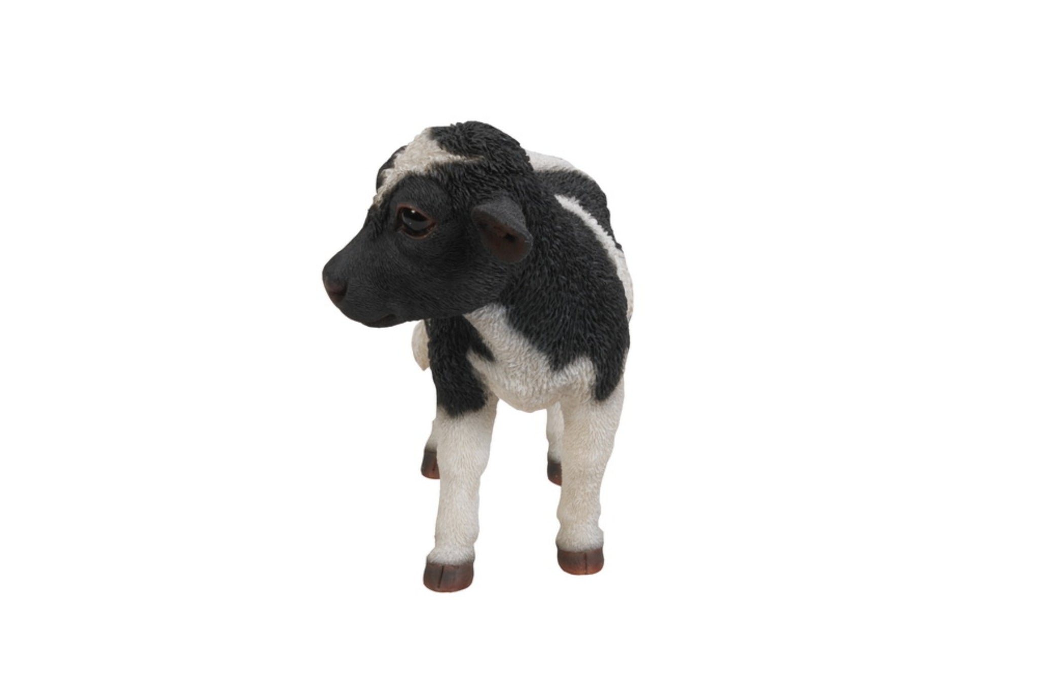 Black and white standing cow is a great addtion to your garden or farm animal collection. Made with polyresin, this figurine is great for both indoors and outdoors. Makes a great gift for farm animal lovers.