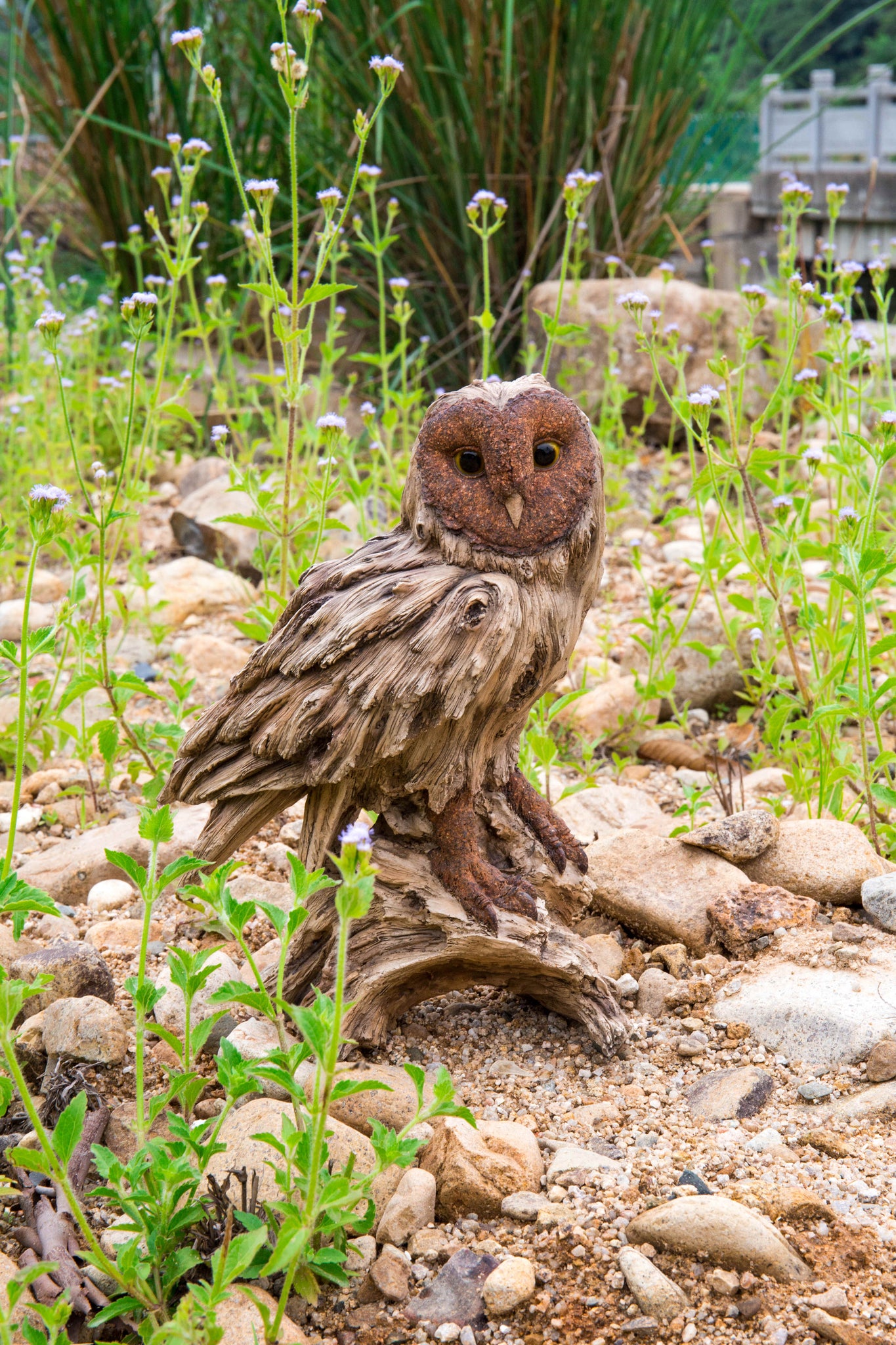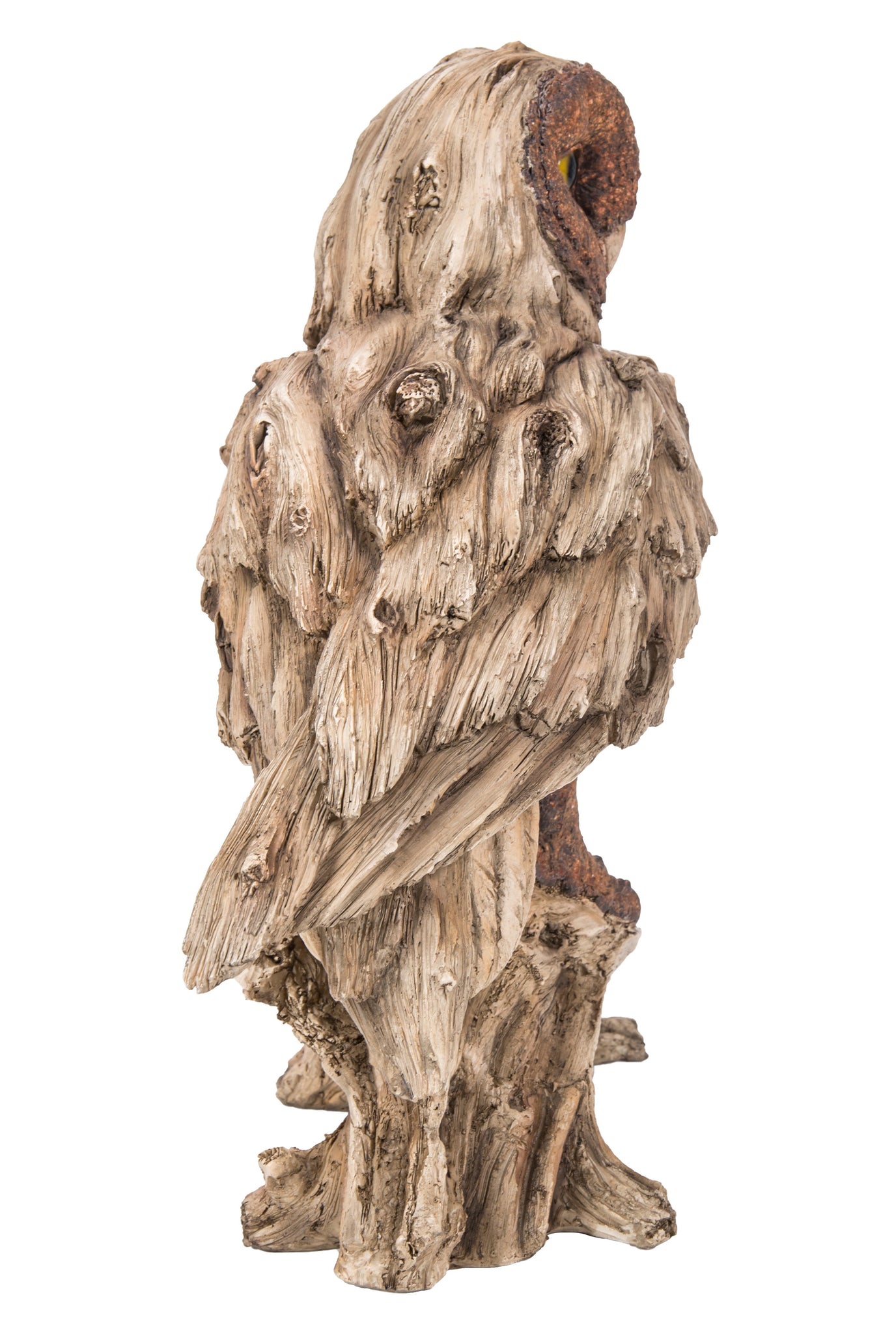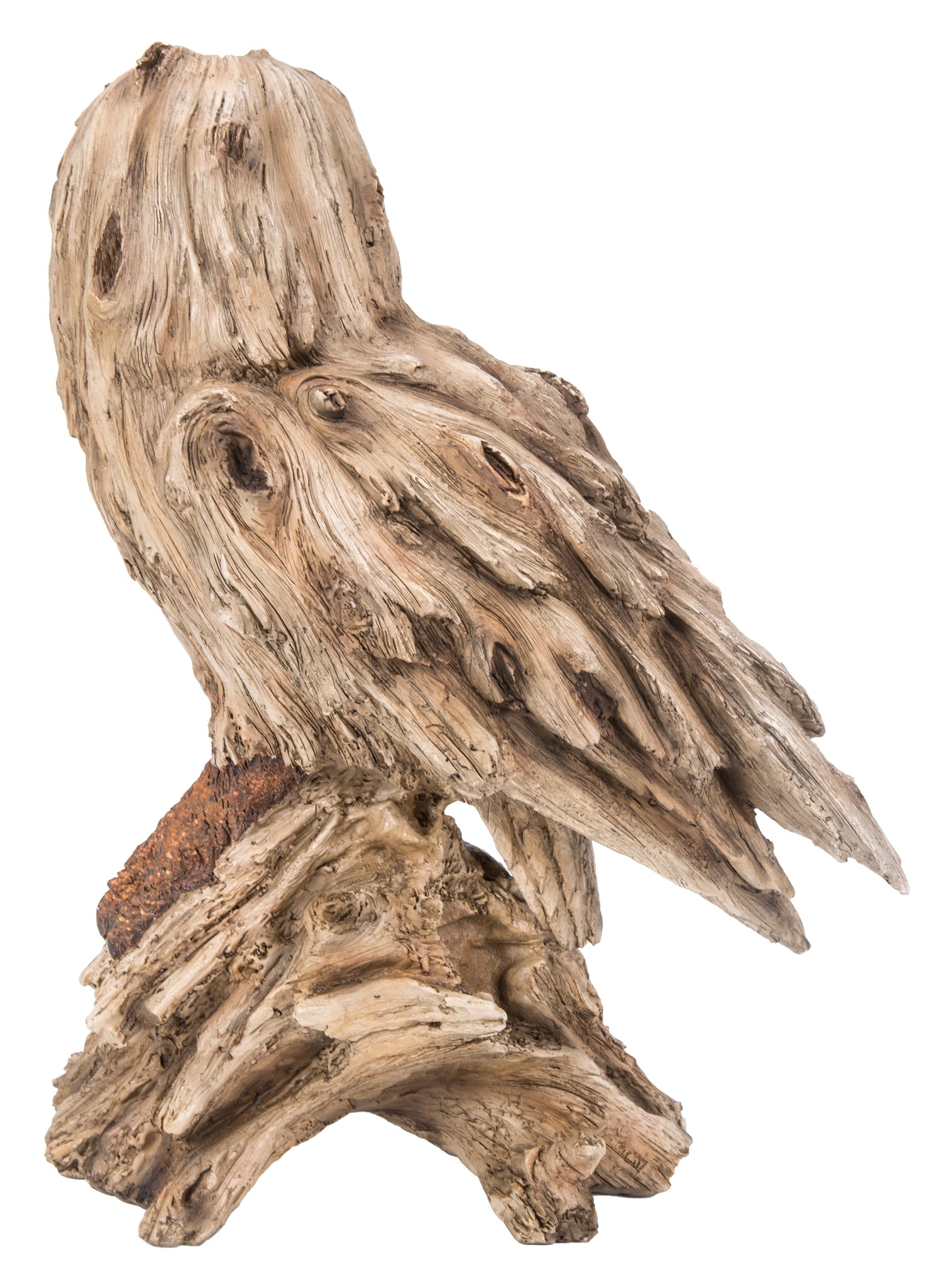 Driftwood Barn Owl On Stump Statue