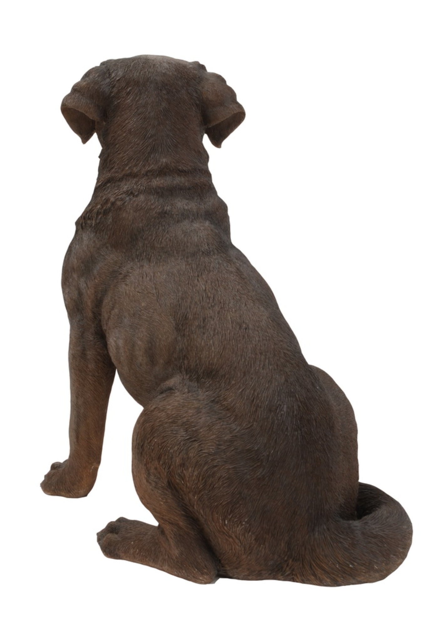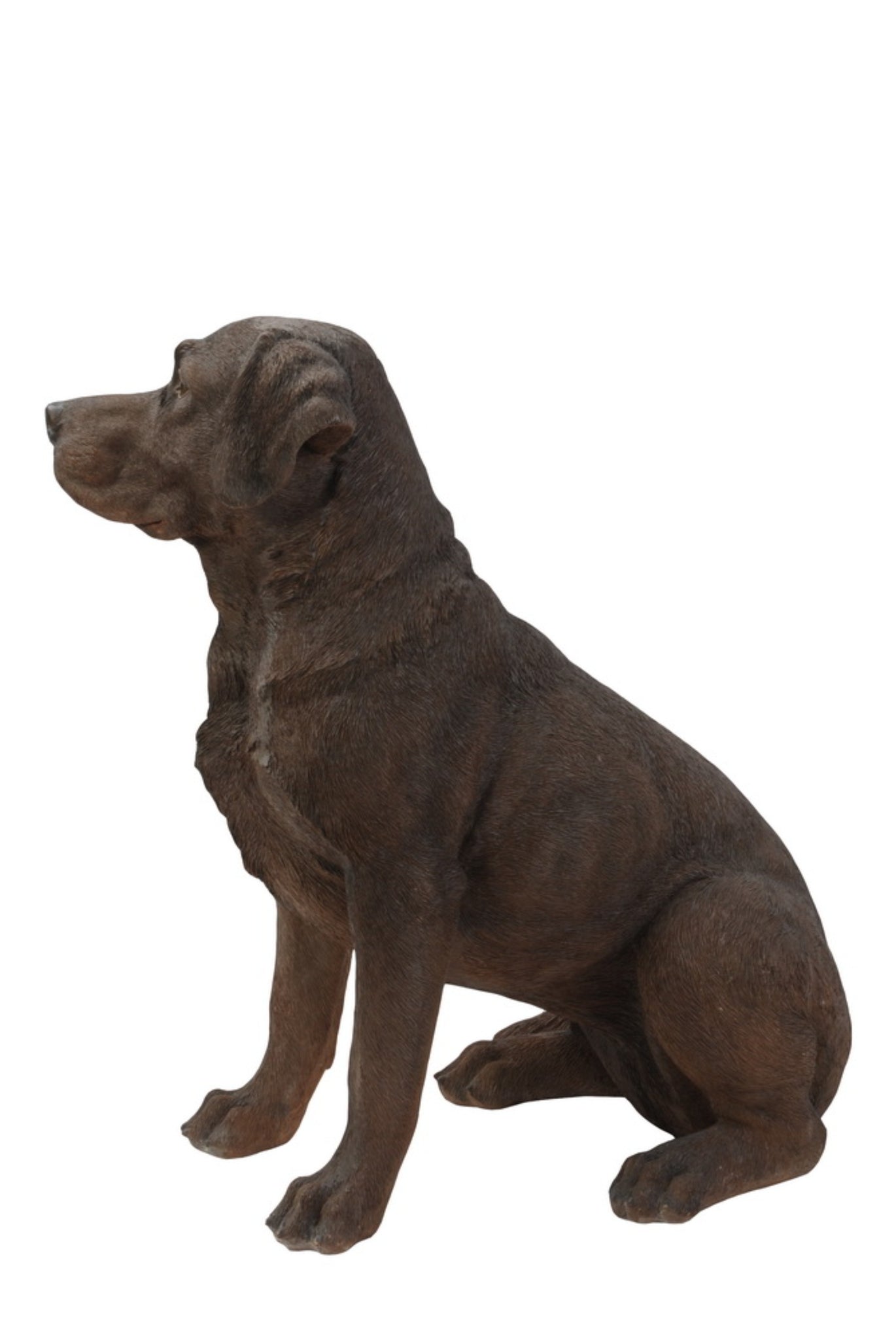"Yellow sitting labrador retreiver dog statue is a life like replica of the lovable dog breed. Made with polyresin, this statue is good for both indoor and outdoor use. Makes a wonderful gift."