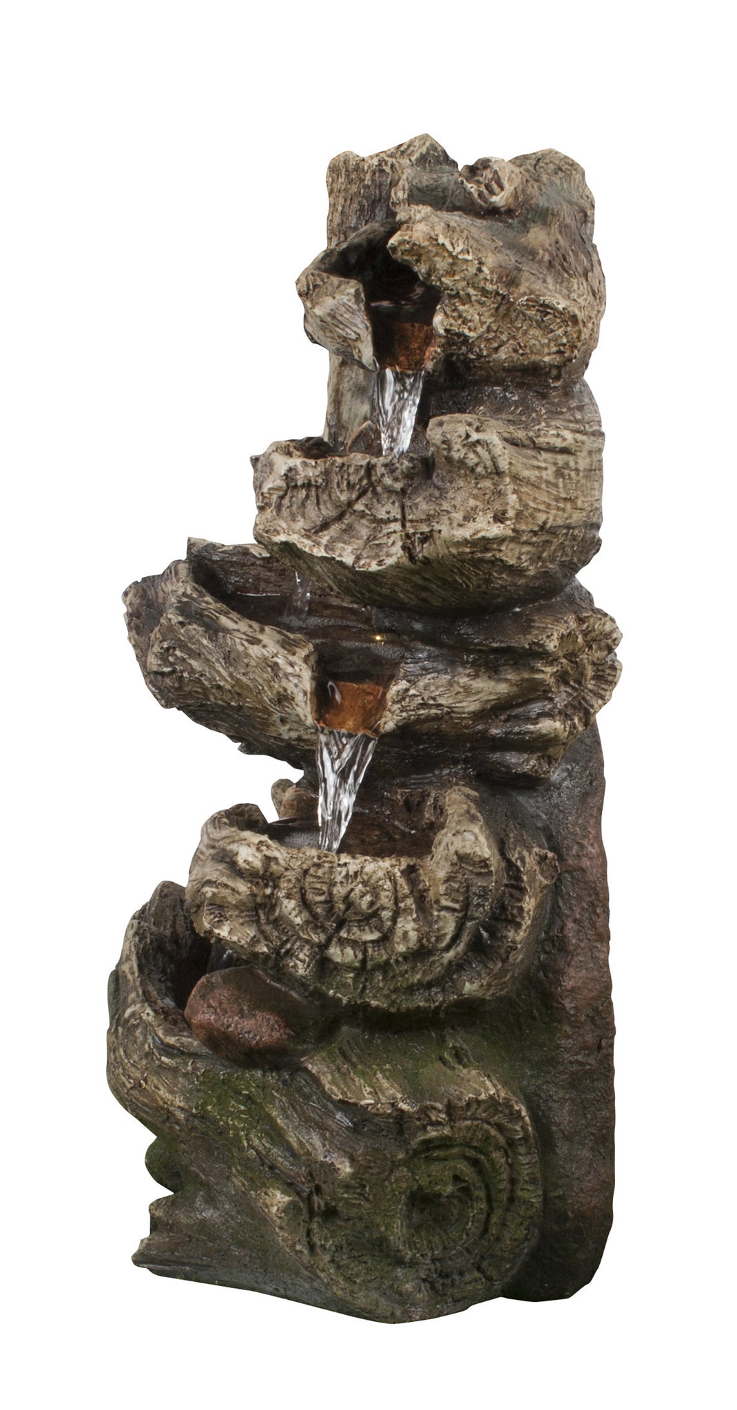 Product Description: Multi Level Branches Fountain w/2 LEDS Add charm and elegance to your home or garden with this exquisitely designed fountain Capture the calming sound of water as it cascades from the top branch 2 LED lights add a touch of warmth to the atmosphere Pump Included Height: 20 Item Composition: Polyresin Color: Brown tones