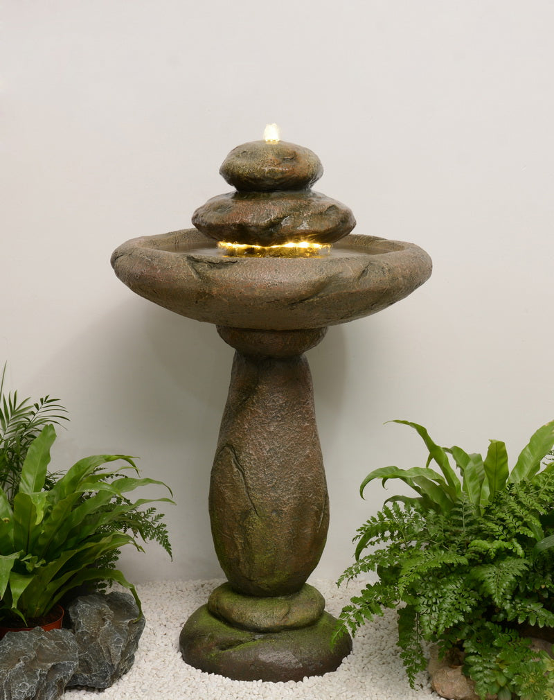 Stone Pedestel Fountain Bird Bath with Warm White LED & Strip Light