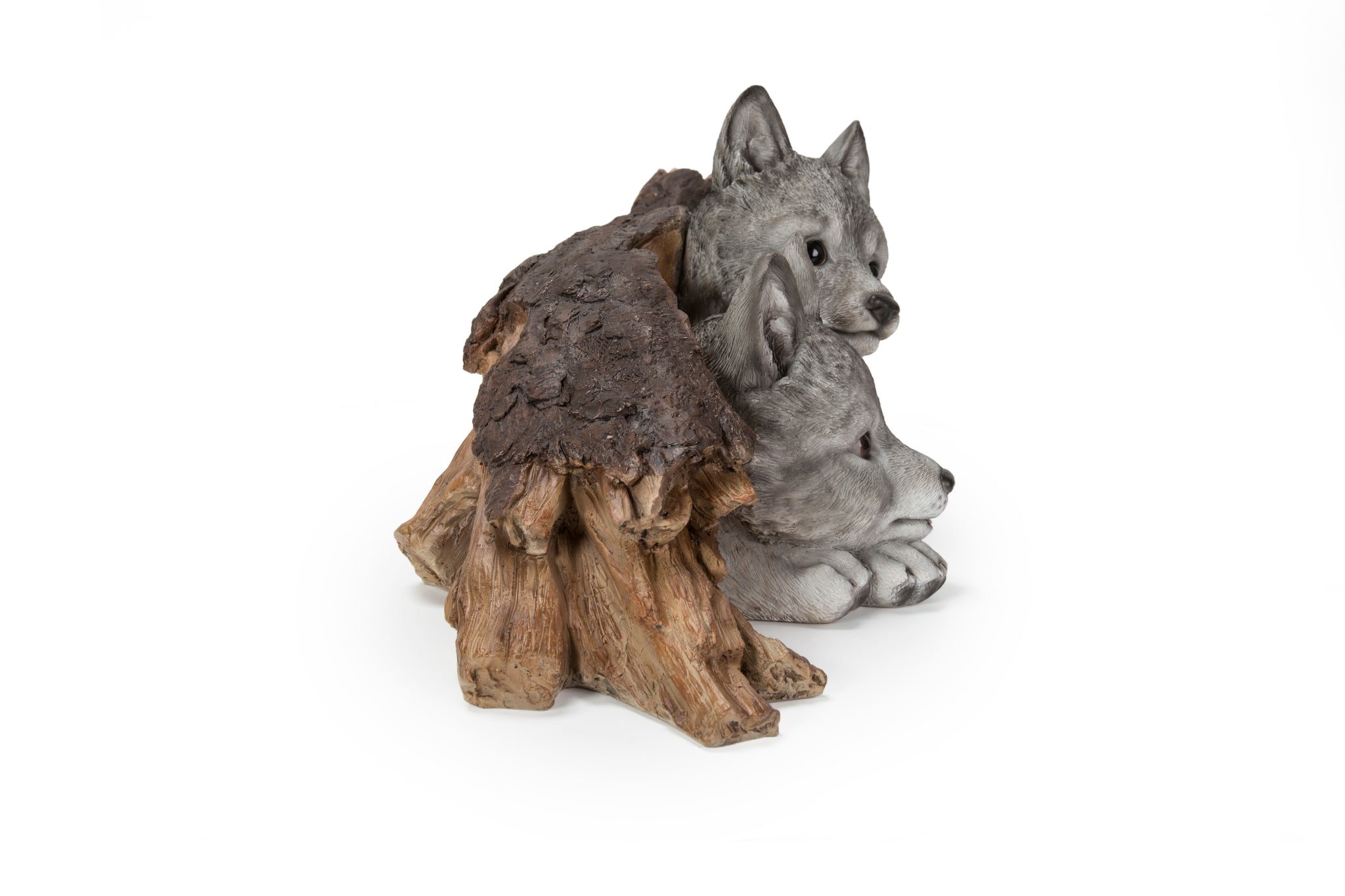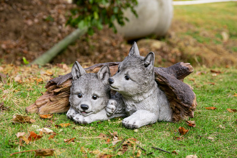 • Load image into Gallery viewer, Grey Wolf Cubs Hiding Under Log Statue