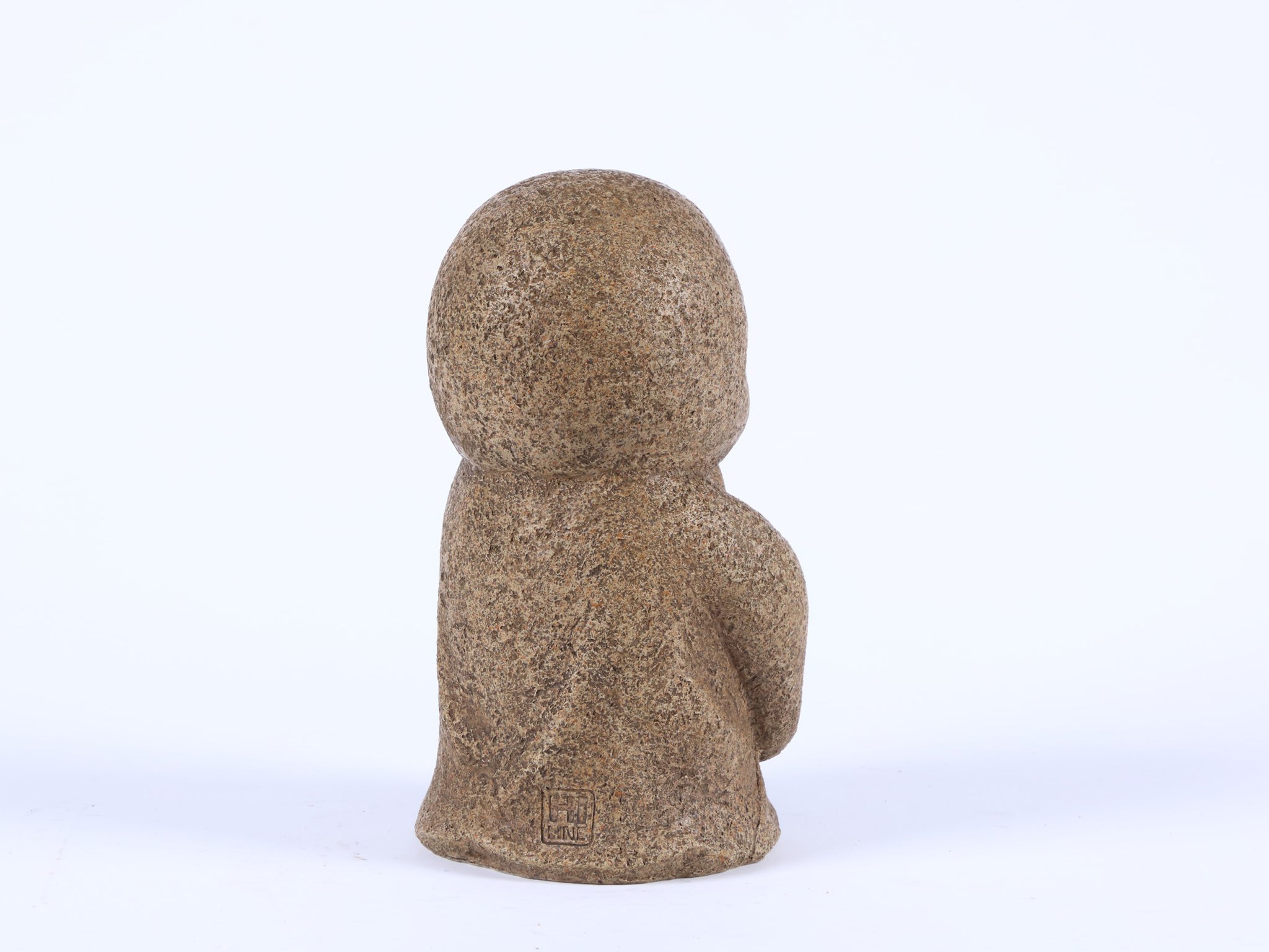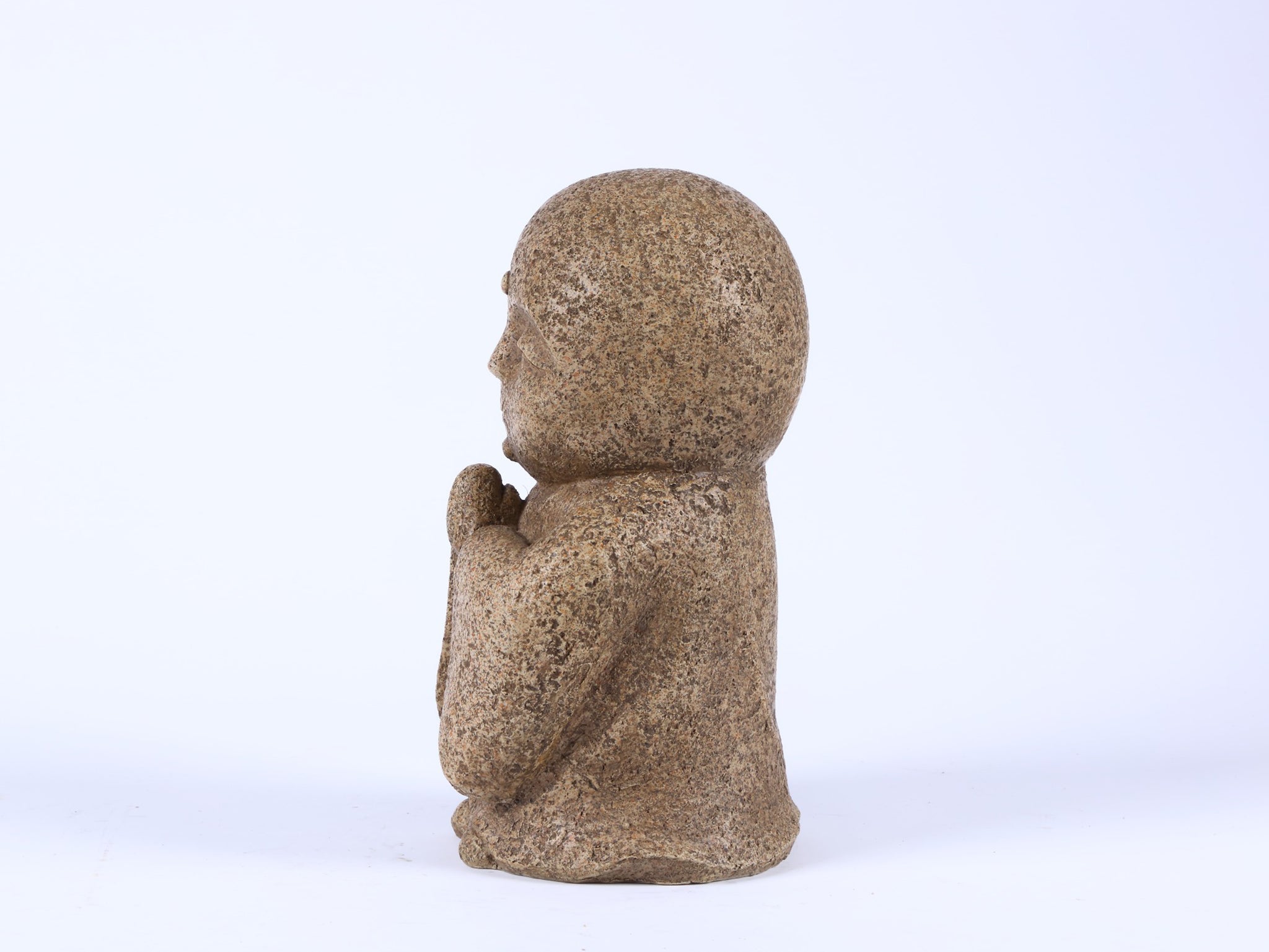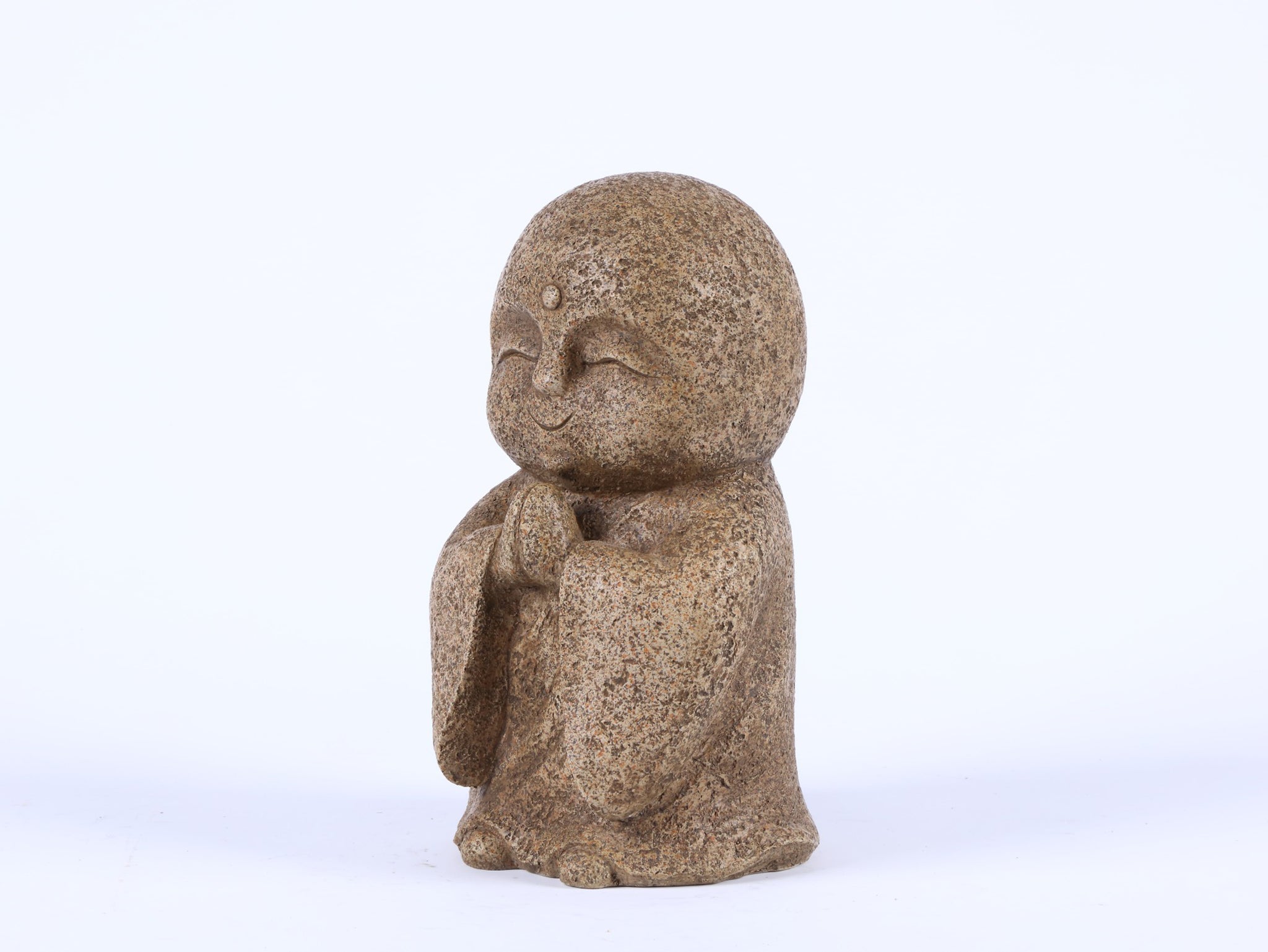 This adorable statue is standing with its hands folded in prayer. This particular buddha is a symbol of luck.