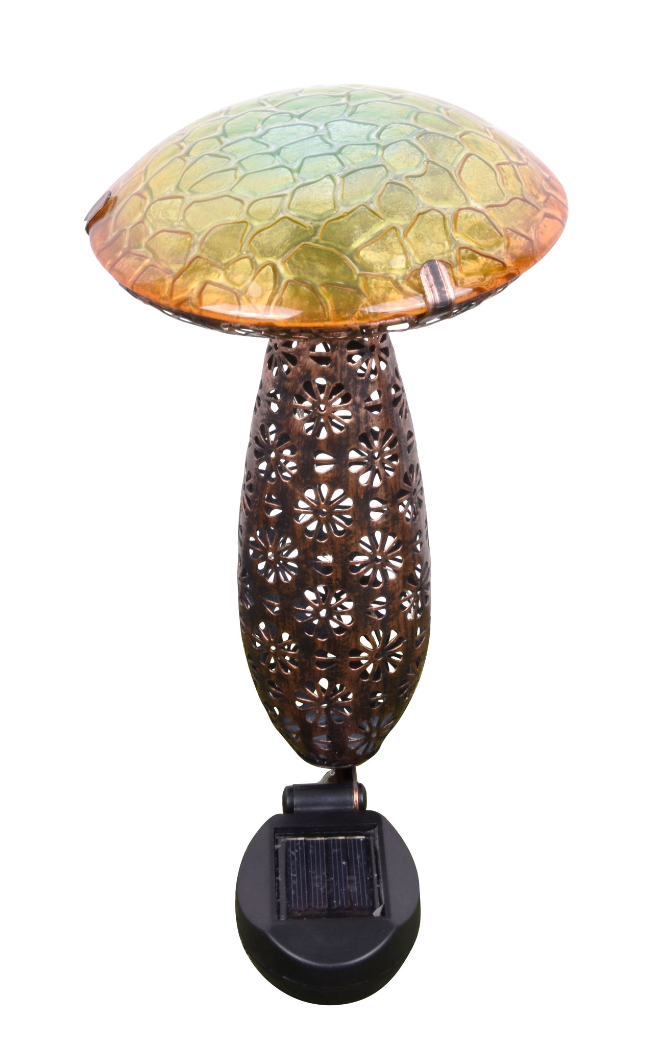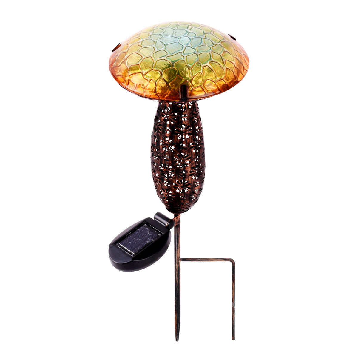 Metal And Glass Solar Mushroom Stake with LED - Yellow