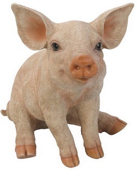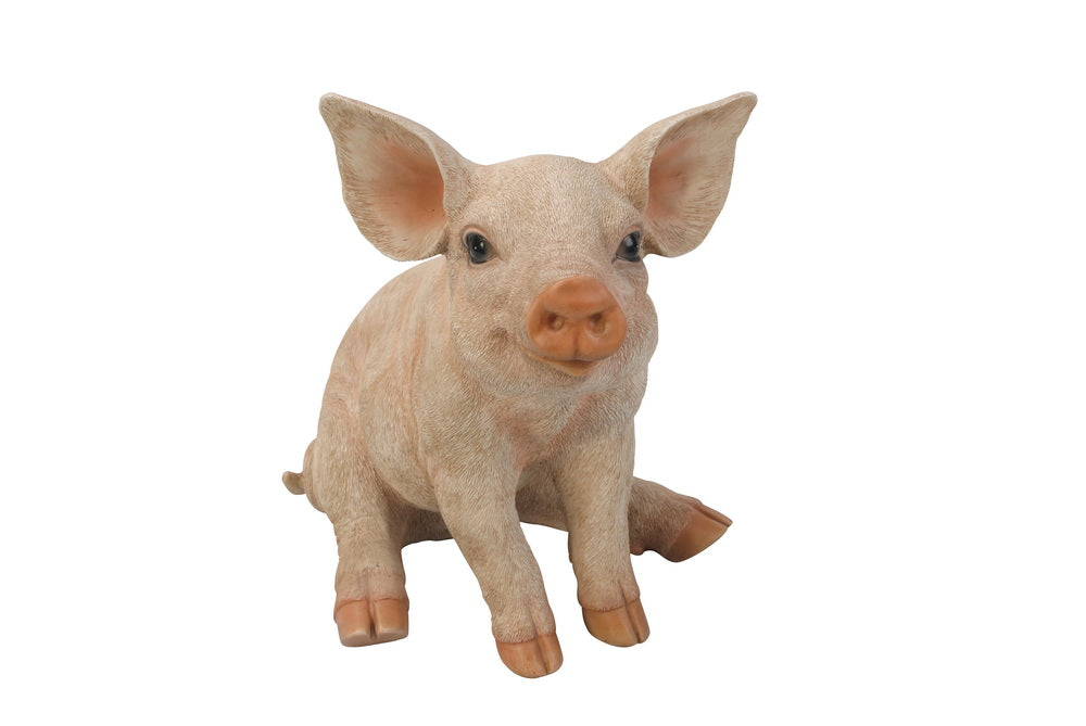Product Description: Small seated pig. Detailed shades of pink create realistic texture on this lovely statue. Made from durable polyresin. Ideal for indoor and outdoor use. Pig-Sitting-Small Color: Brown & Light Grey Great for Indoor Display/ Outdoor Item Composition: Polyresin