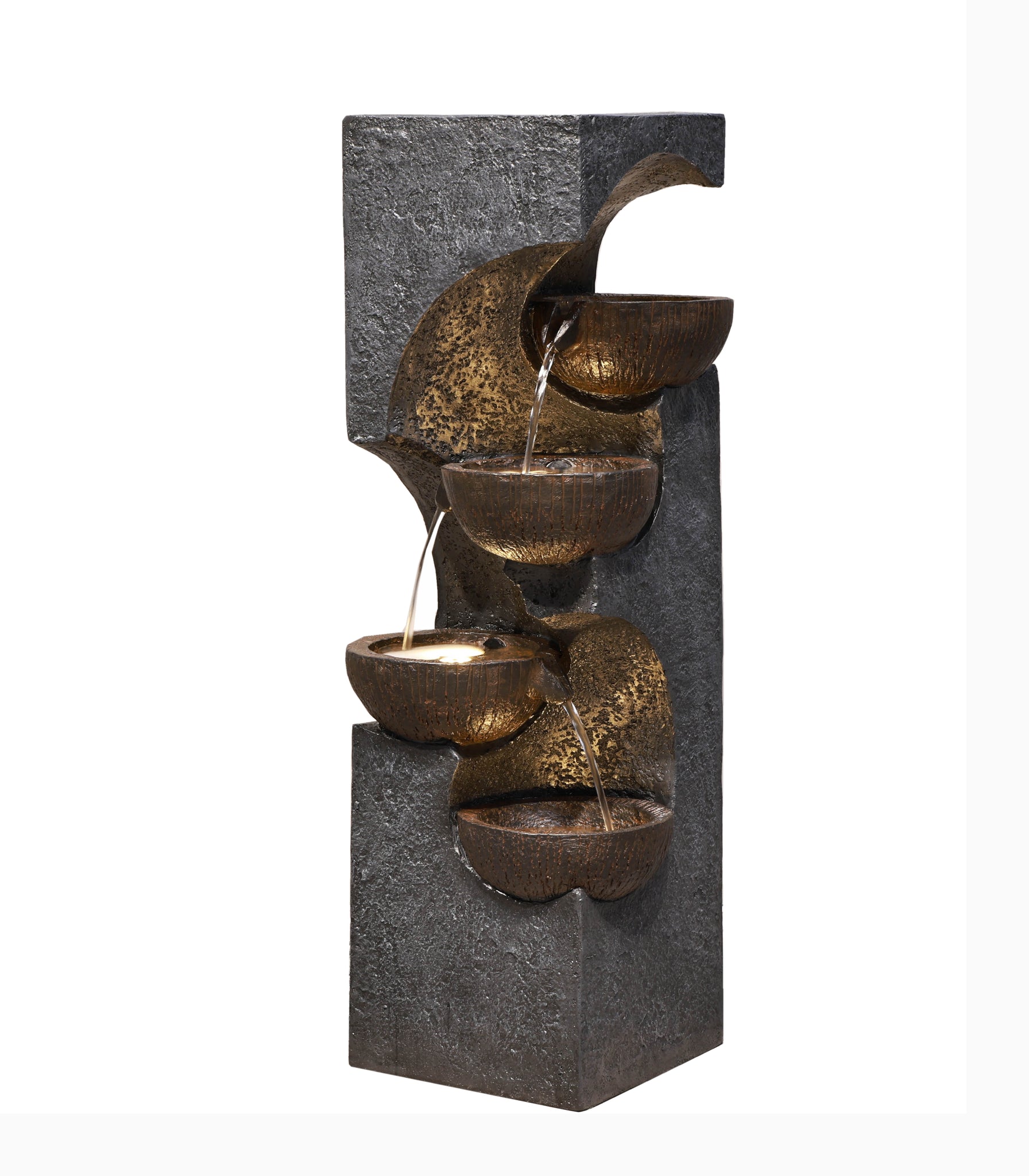 Introducing our exquisite Home and Garden Decor Fountain - the perfect addition to your indoor or outdoor space. Crafted with high-quality materials and designed with intricate details, this fountain is sure to impress anyone who lays eyes on it. It comes with a powerful and reliable pump that produces a tranquil and soothing water flow, creating a serene ambiance in any room or garden. The sound of water trickling down the tiers of the fountain will instantly relax your mind and spirit. Spruce up your garden with this amazing water fountain. Appears to be multi levels of bowls with water cascading from one section to the next. The light feature will add warmth and creativity to the ambience especially at night. Our fountain is easy to set up and maintain. The fountain is also easy to clean, and its compact size makes it ideal for any space. With its classic and elegant design, this fountain will complement any decor style. Whether you have a modern or traditional home, this fountain will add a touch of sophistication to your space. It is perfect for creating a peaceful oasis in your living room, bedroom, garden.