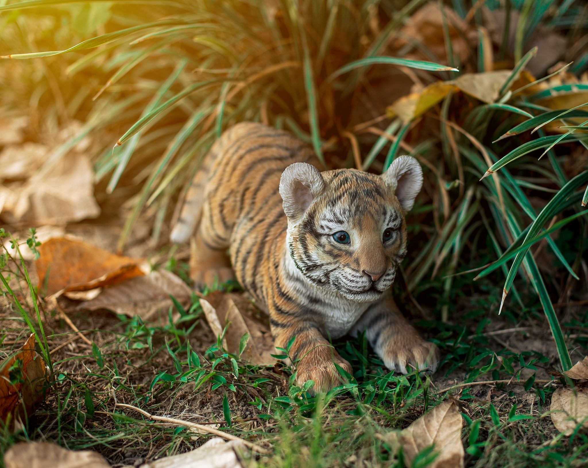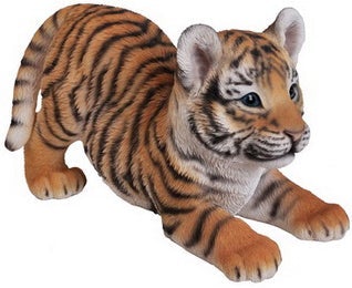 Adorable seated tiger cub. Finished with soft features and charming detail in the face. Made with polyresin. Ideal for both indoor and outdoor use.